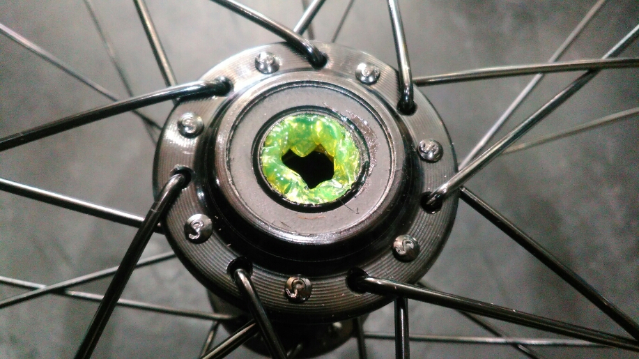 そして「フレ取り」 と言う作業で車輪の歪みを修正し、タイヤ、チューブ、リムテープ、後輪のギヤを取り付けます。